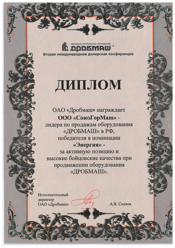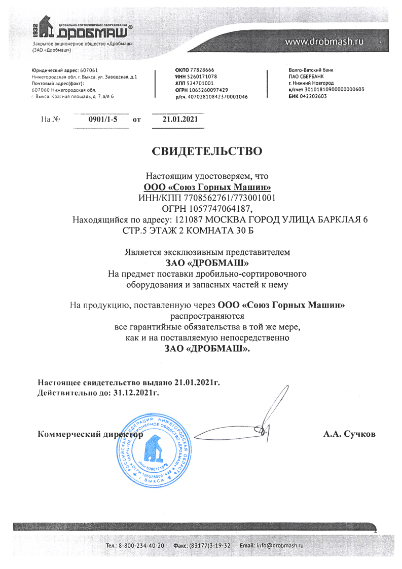 дробильно-сортировочного оборудования в Российской Федерации, ЗАО "Дробмаш" с представительством в г. Москва. Вся