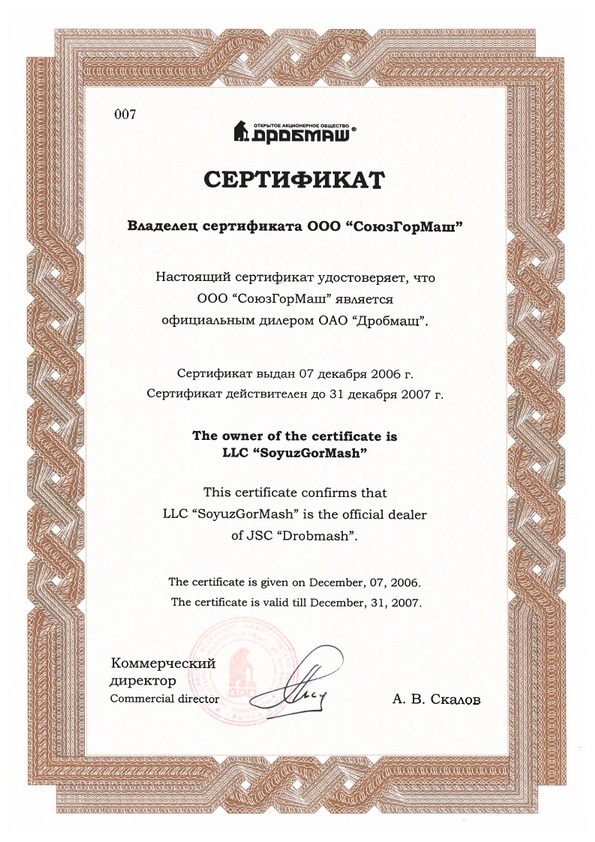 Сегодня ООО "Союз Горных Машин" является официальным дилером ведущего производителя